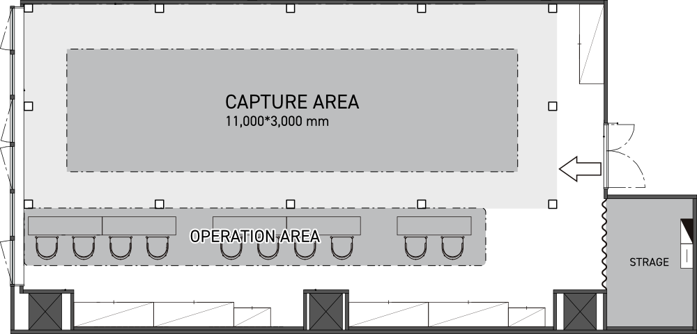The studio has 30 VICONs, a capture area that can record up to 6 people, an operation area and waiting area to accommodate a large number of people. (For groups of 6 or more, please inquire) - Case Studies